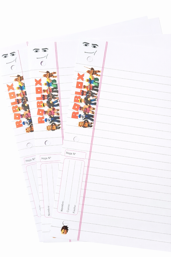 📚🎮 Repuesto Escolar N°3 – Hojas Rayadas Roblox
